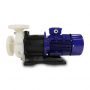A Bomba Centrífuga Magnética MBMAG é uma bomba totalmente hermética, mundialmente consagrada quanto a sua qualidade e sua durabilidade. Estas bombas utilizam transmissão por energia magnética, ou seja, não existe eixo de interligação entre a bomba e o motor, já que a transmissão se da através de dois imãs (magnetos), um externo preso ao motor e outro interno, sendo o interno recoberto com termoplástico anticorrosivo. O magneto interno é fixado a um rotor centrífugo, e este conjunto gira deslizando em um eixo de cerâmica ou carbeto de silício. Desta forma estes equipamentos dispensam vedações nas partes giratórias como selos mecânicos ou gaxetas, isto traz diversas vantagens para as bombas magnéticas. Ideal para aplicações em indústrias químicas e farmacêuticas, fábricas de circuitos impressos, banhos galvânicos, máquinas de revelação fotográfica e de raios-X, centros de hemodiálise, processos de deionização, tratamento de água, etc.